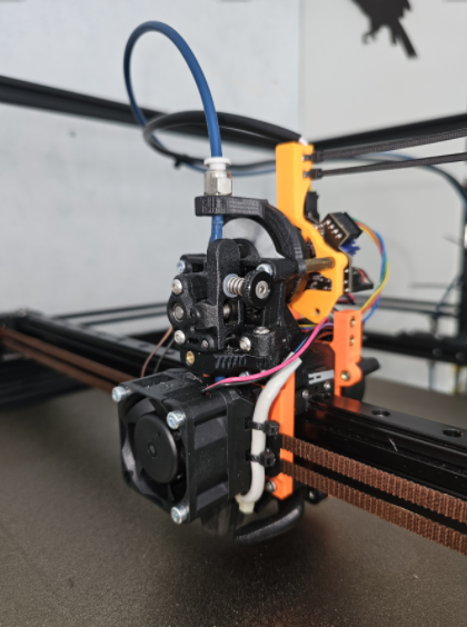 Bij het losnemen van het hotend zat de houder van filamentknipper in de weg. De filamentknipper moet ik dus demonteren om mijn hotend los te nemen. Niet echt handig bij een modulair opgebouwde printwagen.
