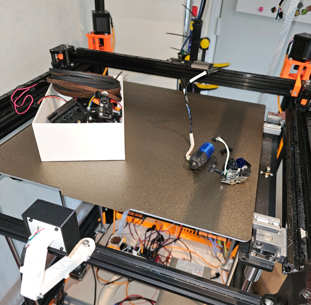 Alles 3, 4 keer controleren.... werkt de schakelaar wel, word de klickyschakelaar goed uit zijn houder gehaald, wordt die ook weer goed terug geplaatst in zijn houder, kloppen de macro's wel, heb ik klipper zodanig goed ingesteld zodat de printwagen zich buiten het printbed kan komen....