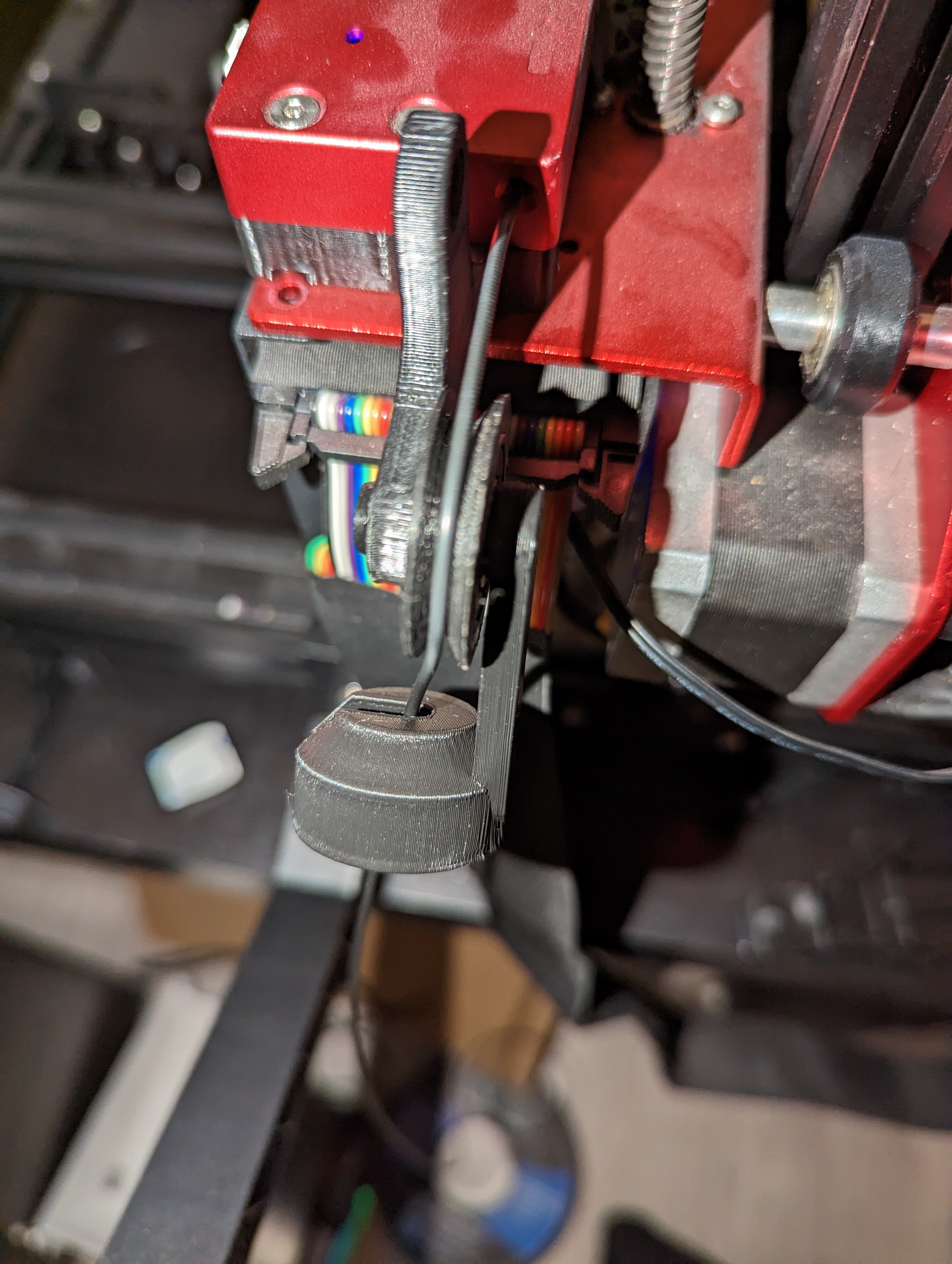 Ik denk niet dat de hoek een te groot probleem wordt als die blocker zelf onder de correcte hoek wordt geplaatst. Dan is het gewoon een kwestie denk ik van de blocker richting de vloer te draaien. Enfin, we zullen zien. Door dat "rare geluid" probleem al 2 printpogingen achter de rug die niet bleven plakken. Was er gelukkig snel bij. Poging 3 is onderweg.