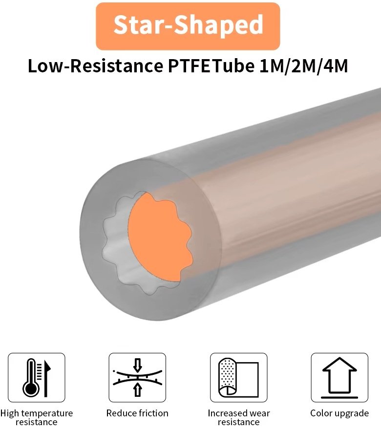 De theorie erachter is dat deze buis aan de binnenzijde stervormig is in plaats van gewoon rond. Hierdoor zou je minder contactvlak hebben tussen filament en teflon wand. Daar kun je uiteraard een discussie over opzetten, want filament met een diameter van 1,75 mm in een buisje van 2 mm zou betekenen dat je ook maar een klein contactvlak hebt omdat de ronding van het filament kleiner is dan de buisdiameter. Maar hoe dan ook, niet geschoten is altijd mis, dus maar 4 meter besteld.