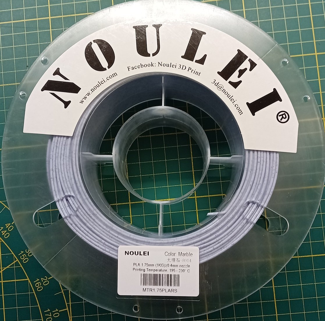Het is een marmer soort, PLA. Print goed maar heeft wel de neiging tot stringing. Iets meer nabewerking, maar valt op zich wel mee. Heb ik een keertje op Amazon gekocht. Maar ik zie dat het niet meer verkrijgbaar is.