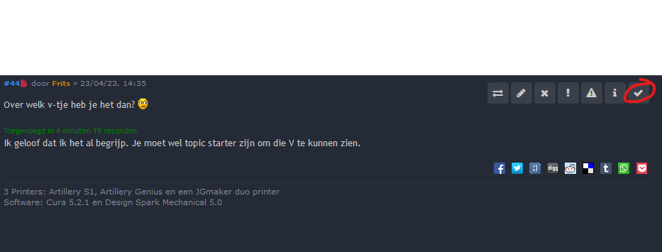 Ik geloof dat ik het al begrijp. Je moet wel topic starter zijn om die V te kunnen zien.