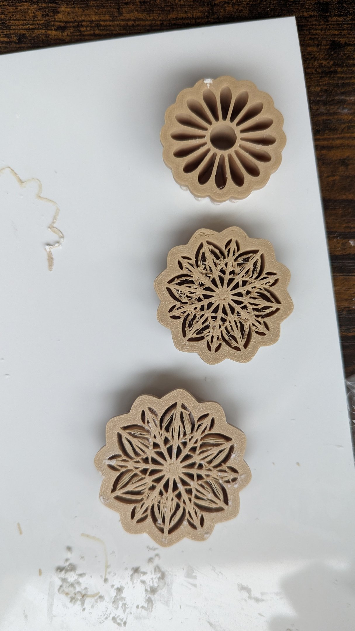 @3DWim Bedankt, de ontwerpen kloppen. Deze komen bij een bekende verkoopster vandaan. Daar kocht ik eerder de mallen/vormen kant en klaar. Polymeerklei valt mee en kan met PLA prima doorgedrukt worden. Het gaat mij meer om de puntjes op de i. Dus minder moeten polijsten van de vormen na het afbakken. Hoe fijnere snijrand hoe minder werk naderhand.