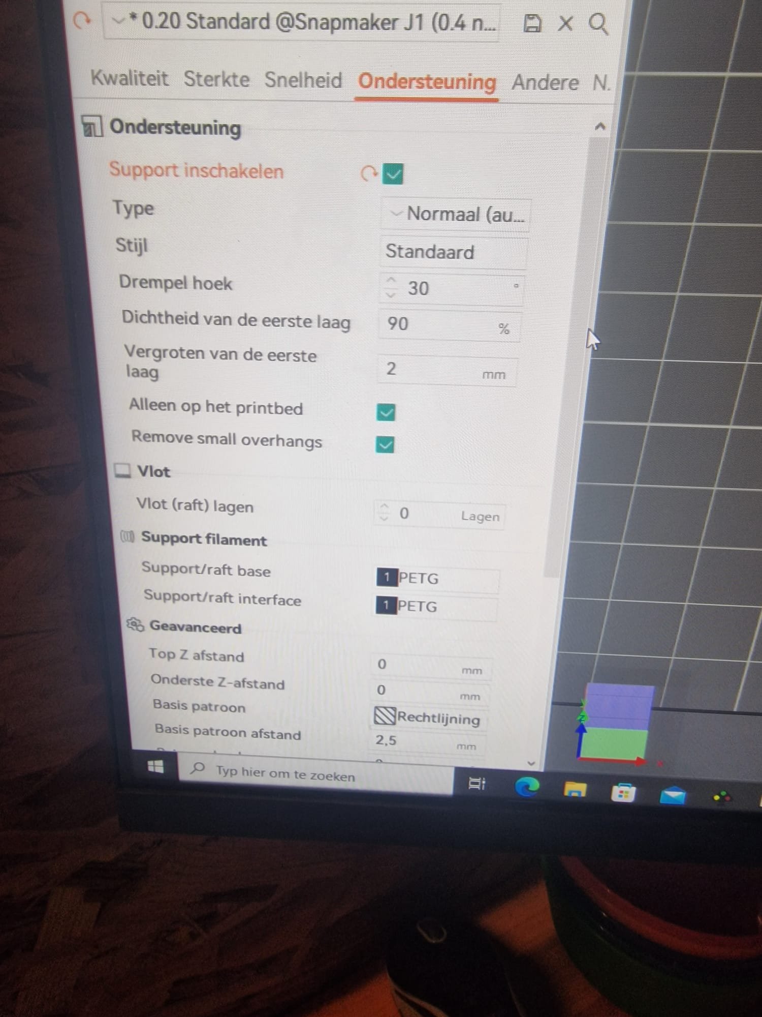 (Mij werd geadviseerd om support met petg te printen maar moet met alleen pla toch ook kunnen)