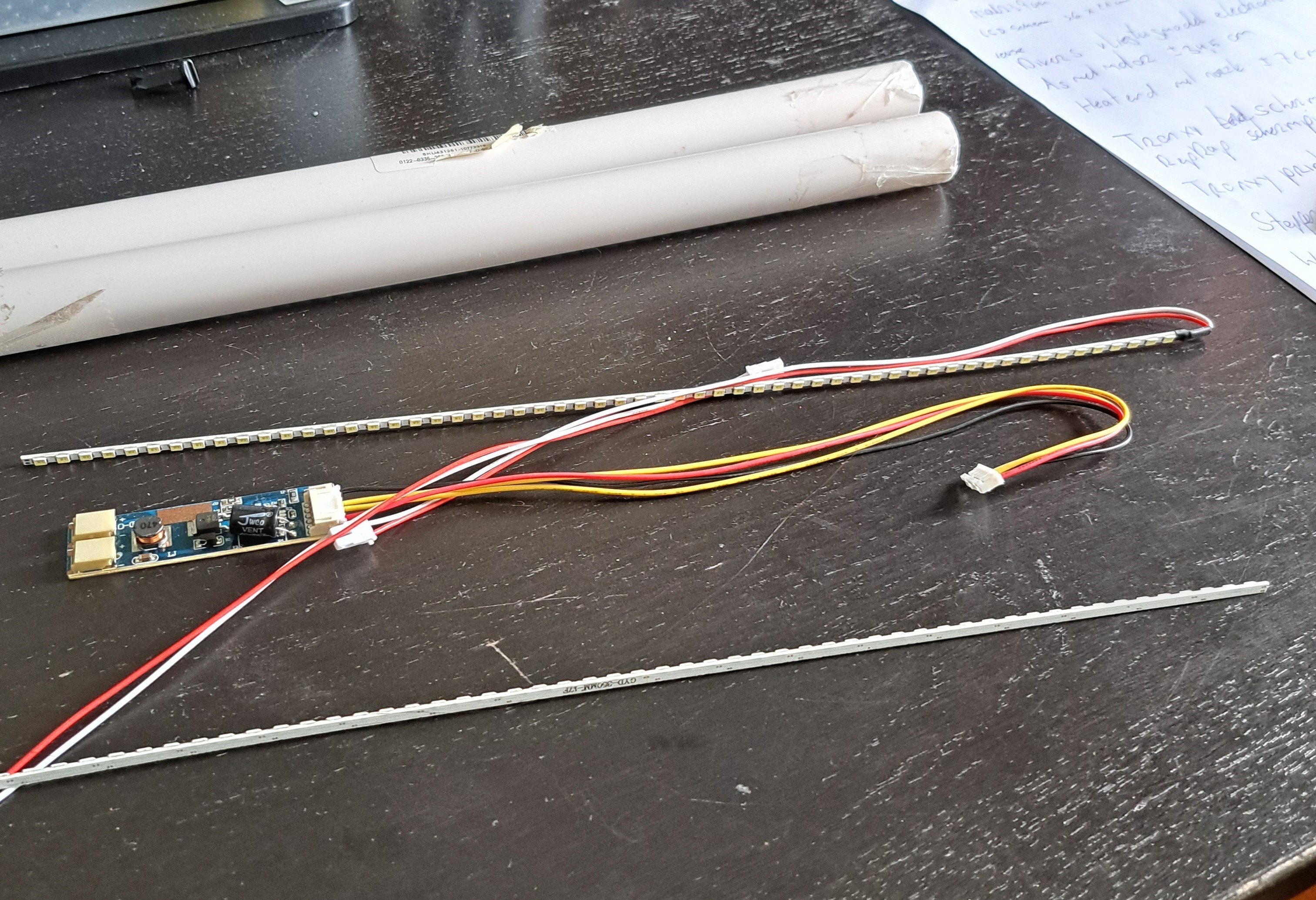Led-verlichting, 2 stuks ongeveer 35 cm lang O.a. Aluminium profielen 60 cm lang 9 stuks, schroefdraad, verschillende maten