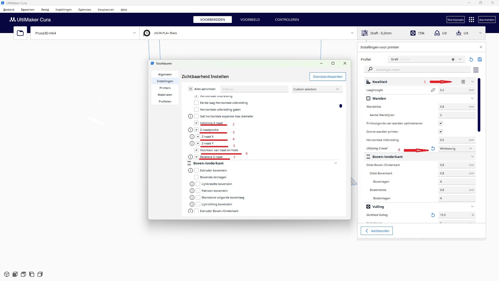 In mijn onbetaalde versie van Cura 5.7.0 kan ik niet kiezen voor willekeurig.