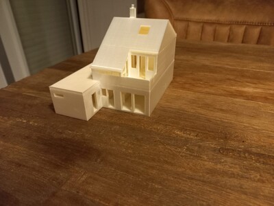 Afgelopen tijd bezig geweest met het tekenen en printen van een huisje wat gekocht is door mijn schoonzus en zwager. Getekend in Sketchup en geprint met eSilk PLA van eSun. Hier gedeeld omdat het kan :D