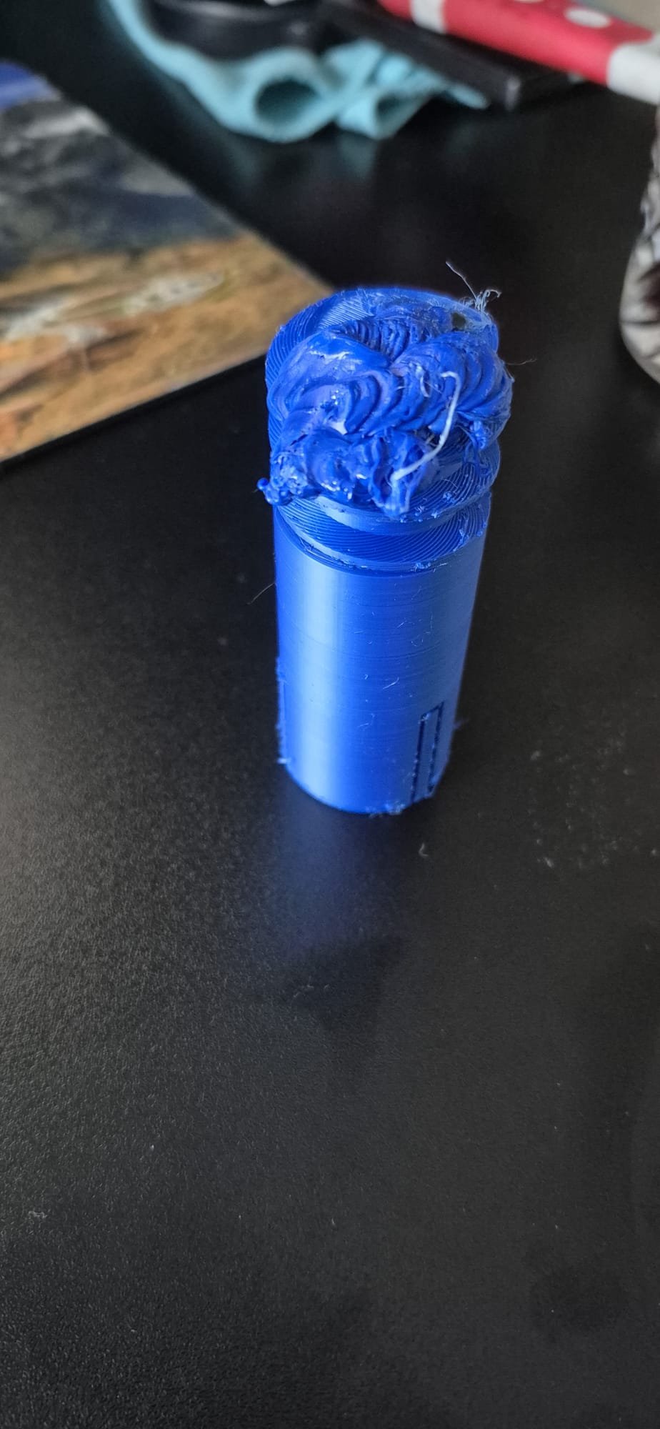 De eerste foto komt op mij over alsog je een probleem hebt met je z-as. De hoeveelheid filament komt op mij over alsof dat veel meer is dan voor de getoonde hoogte nodig is. Ook de eerste paar lagen van je schroefdraad lijken mij keurig gelukt (al kan ik niet door die blob heen kijken...)