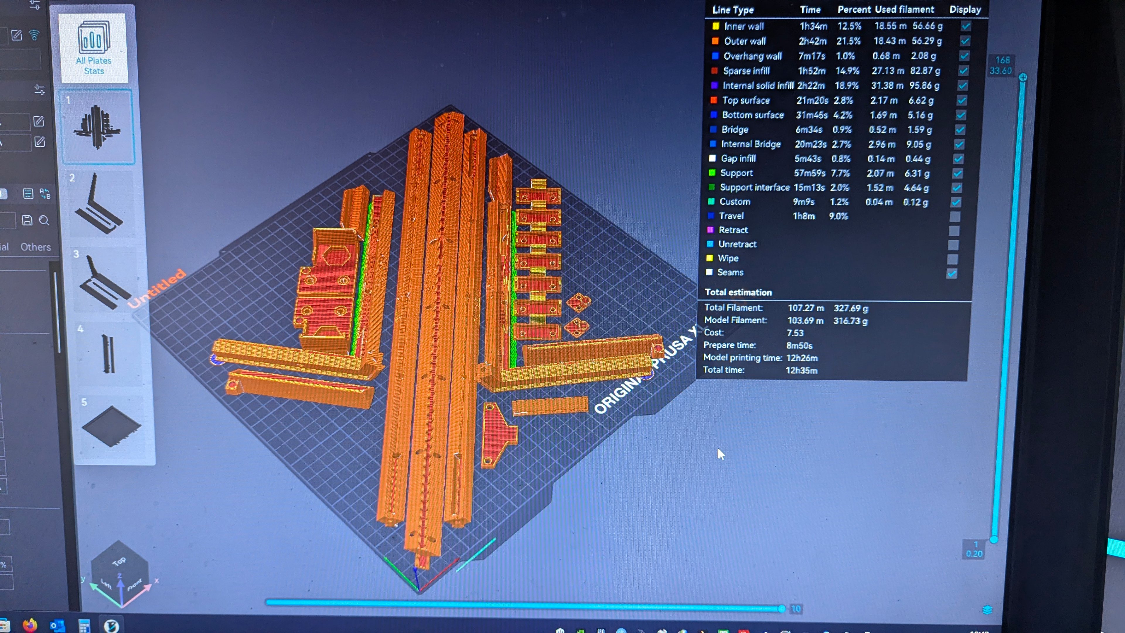 . Dat heb je dus NIET bij een PrusaXL, daar die met verschillende spuitkoppen zit en er dus NIET telkens gepurged moet worden bij het wisselen van kleur. De printer pakt gewoon een andere kop waar het juiste materiaal op zit en gaat gelijk verder waar de gebleven is met de nieuwe spuitkop, al is het wel handig om zo'n wipe/prime tower te gebruiken om de druk op te bouwen.