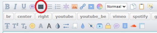 Onderstaand zie je het knopje dat de Code tags maakt.