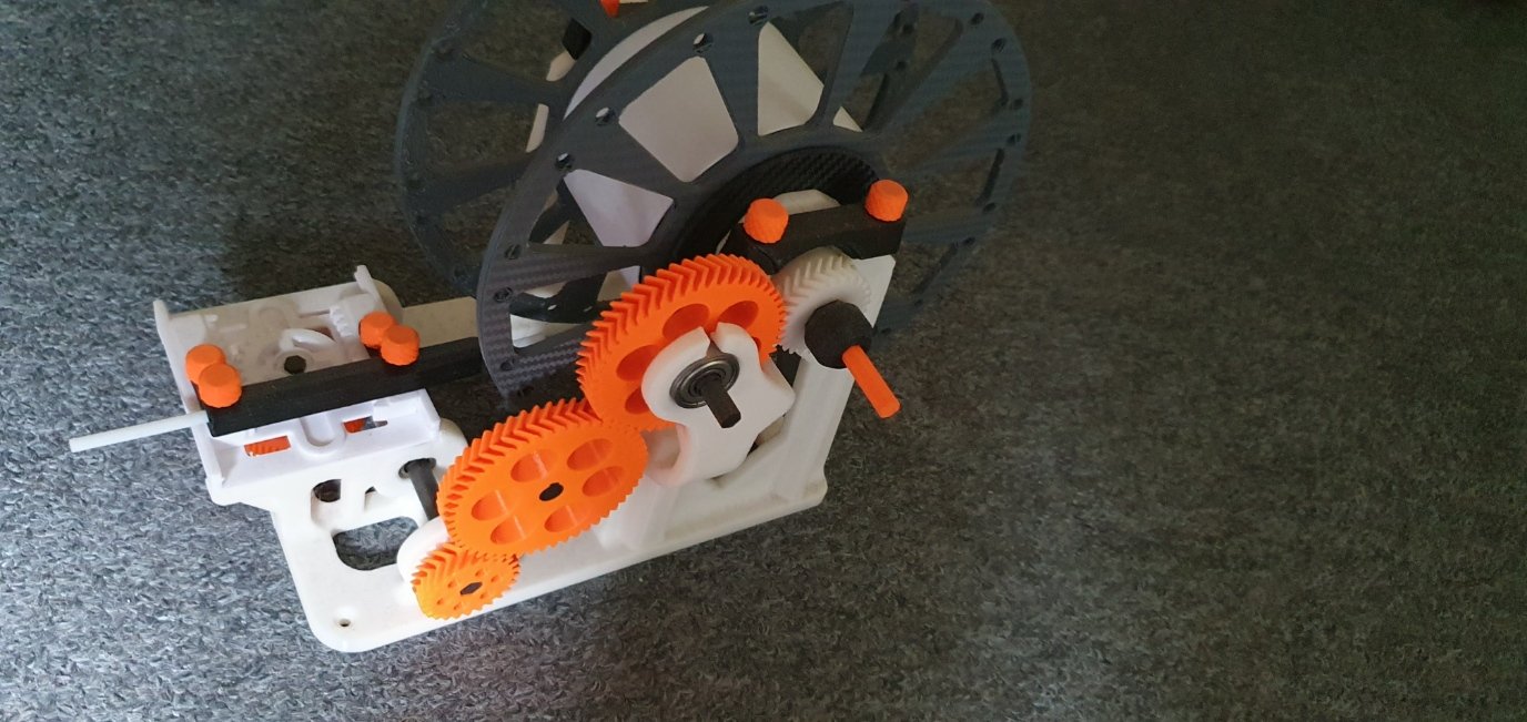 Na 2 keer een rol filament met de hand te hebben over gespoeld heb ik maar de halfautomatische versie geprint. Op de foto staat het donordeel er niet op maar op de as na is die ook klaar. Hij is ook kant en klaar bij Ali te koop, maar daar heb je natuurlijk geen 3D-printer voor. De tandwielen heb ik in PetG geprint en het frame in PLA. De assen heb ik uit ABS geprint. Verder heb ik de invulling en de wanden versterkt want er waren wat meldingen over gebroken assen. De lagers had ik nog liggen.