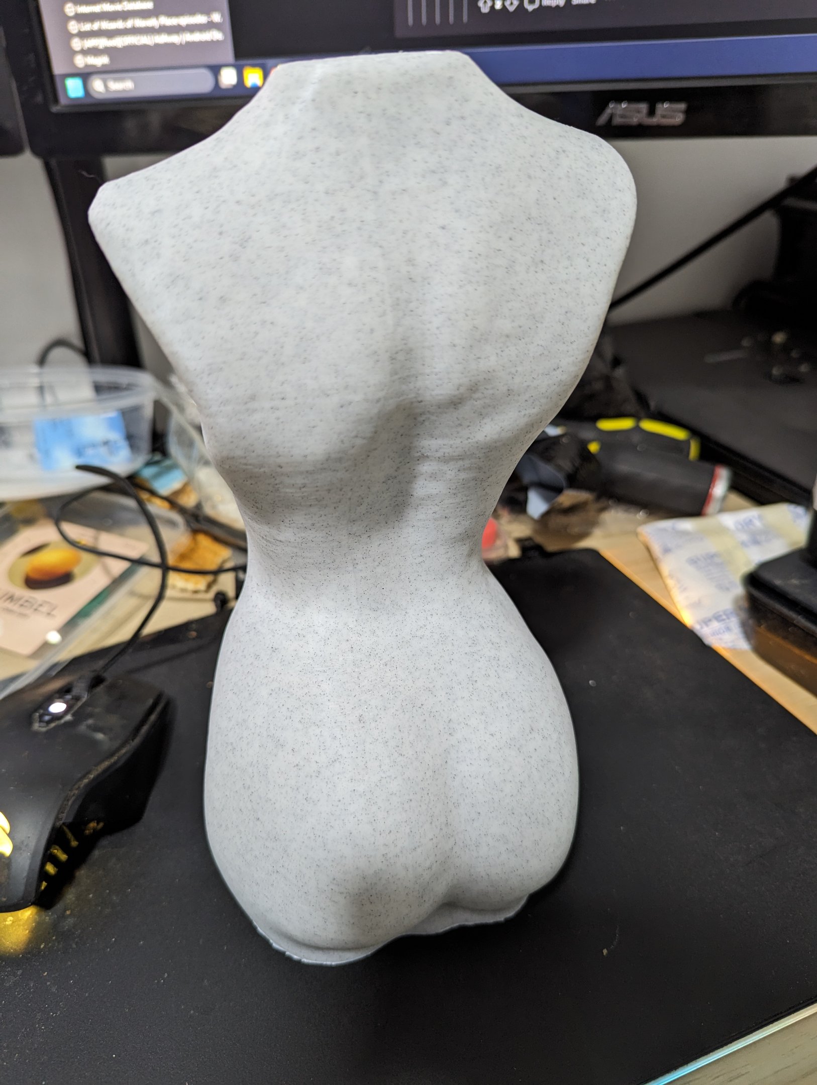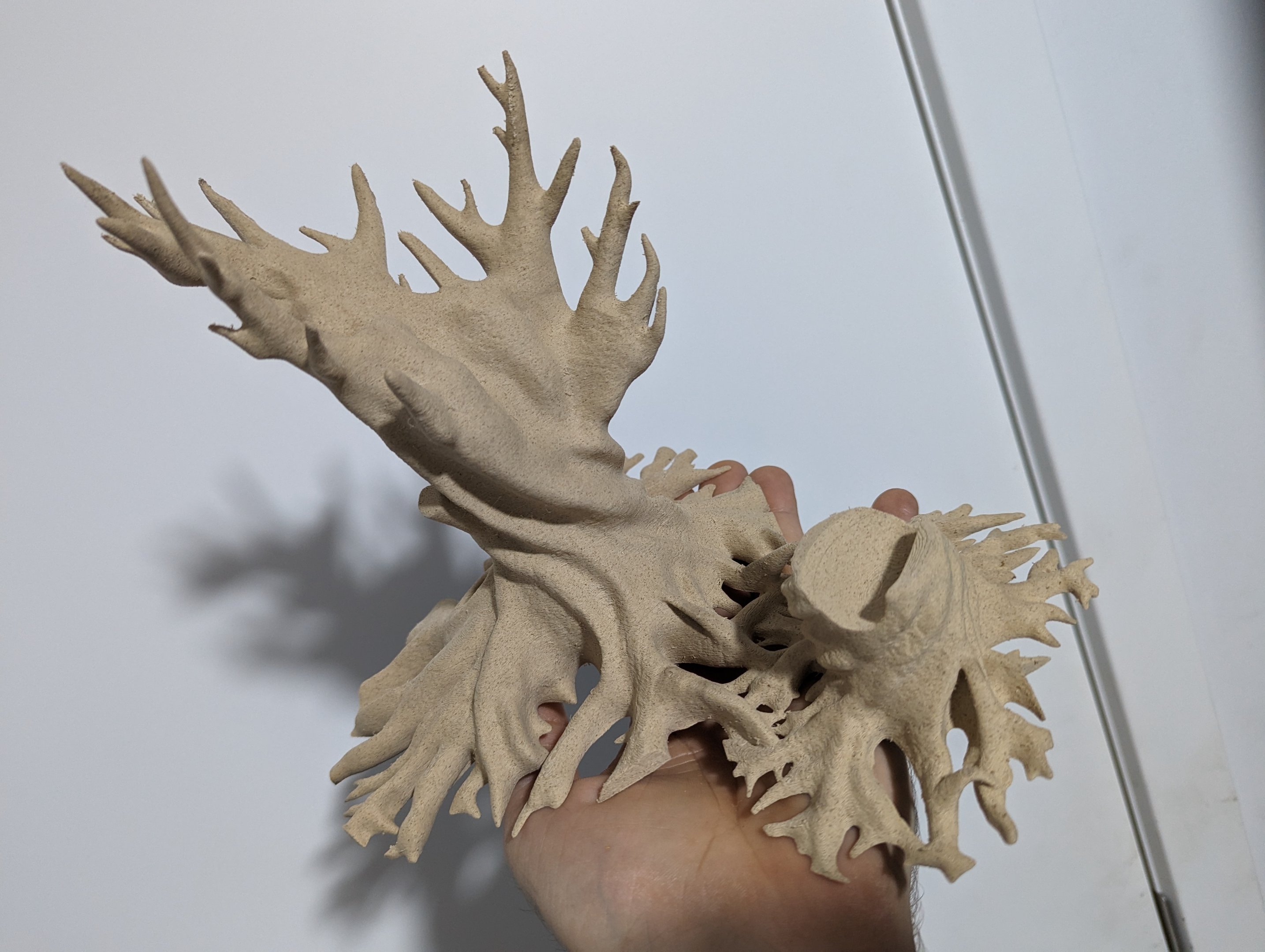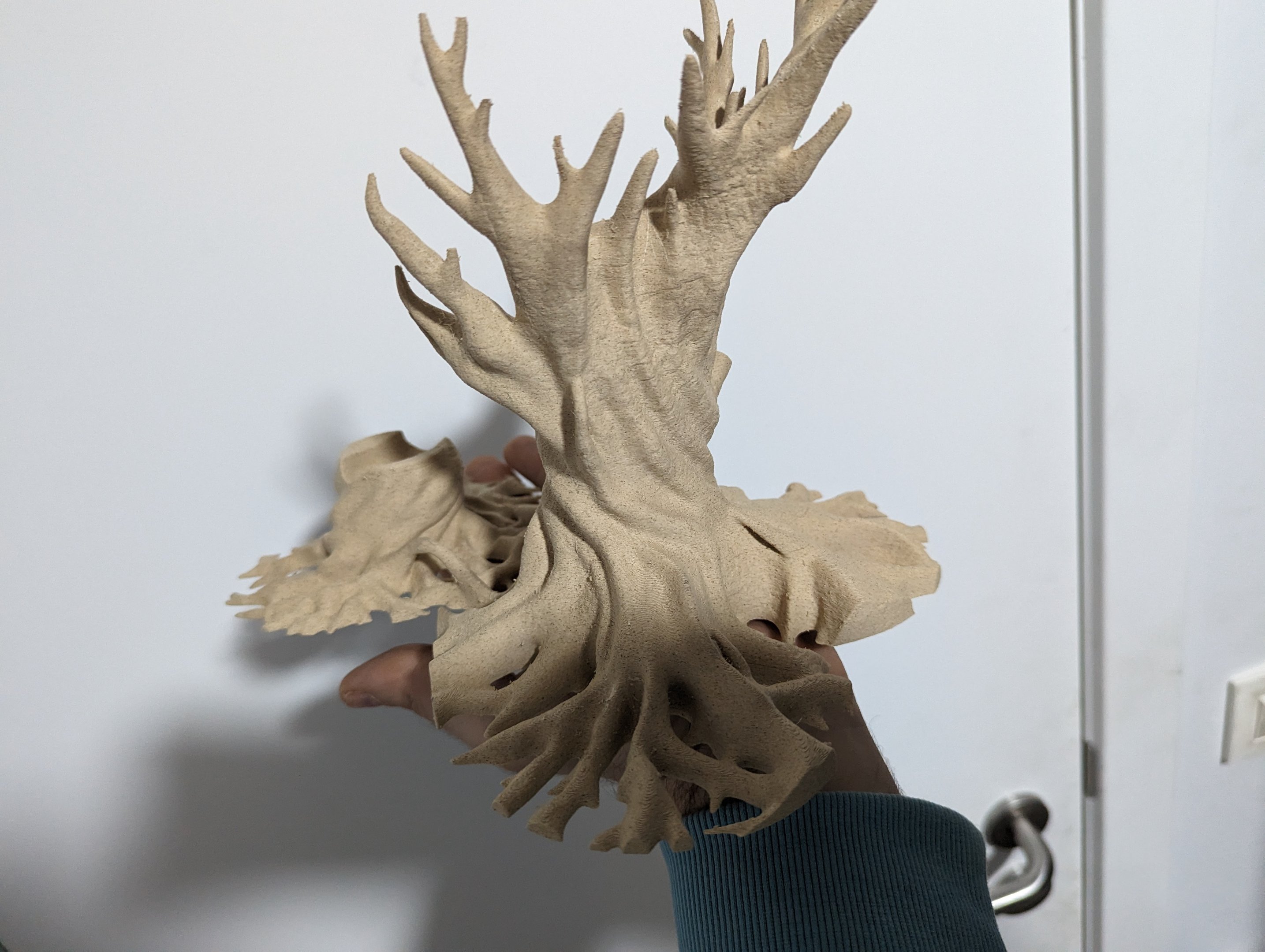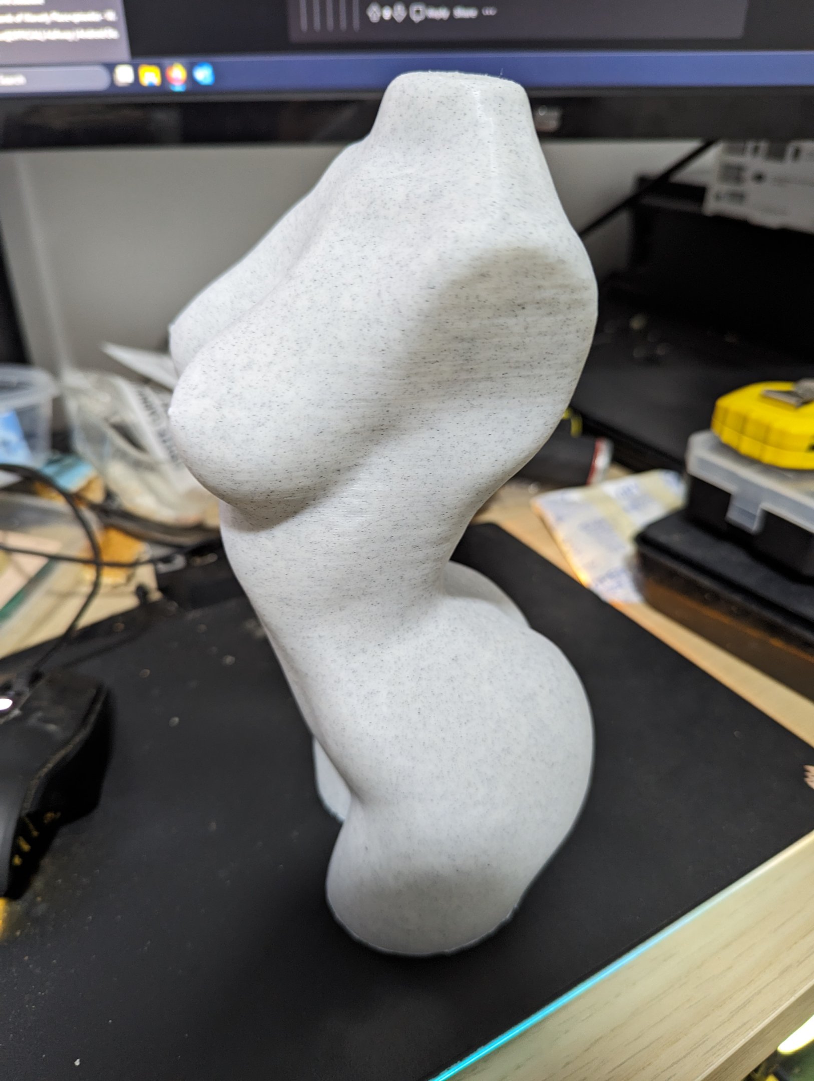 En de laatste voor dit weekend. Uren mee bezig geweest om een model te vinden dat OrcaSlicer (zowel als Bambu Slicer) niet deed crashen tijdens het slicen (zelfs een paar BSOD's gehad en memory access violations, maar da's een ander verhaal) wanneer het model opgeschaald werd naar maximum print volume in Z. Speciaal gebruikt van Sunlu Marble filament want door de marble look in combinatie met de z-seam achteraan te plaatsen is die bijna niet te zien.