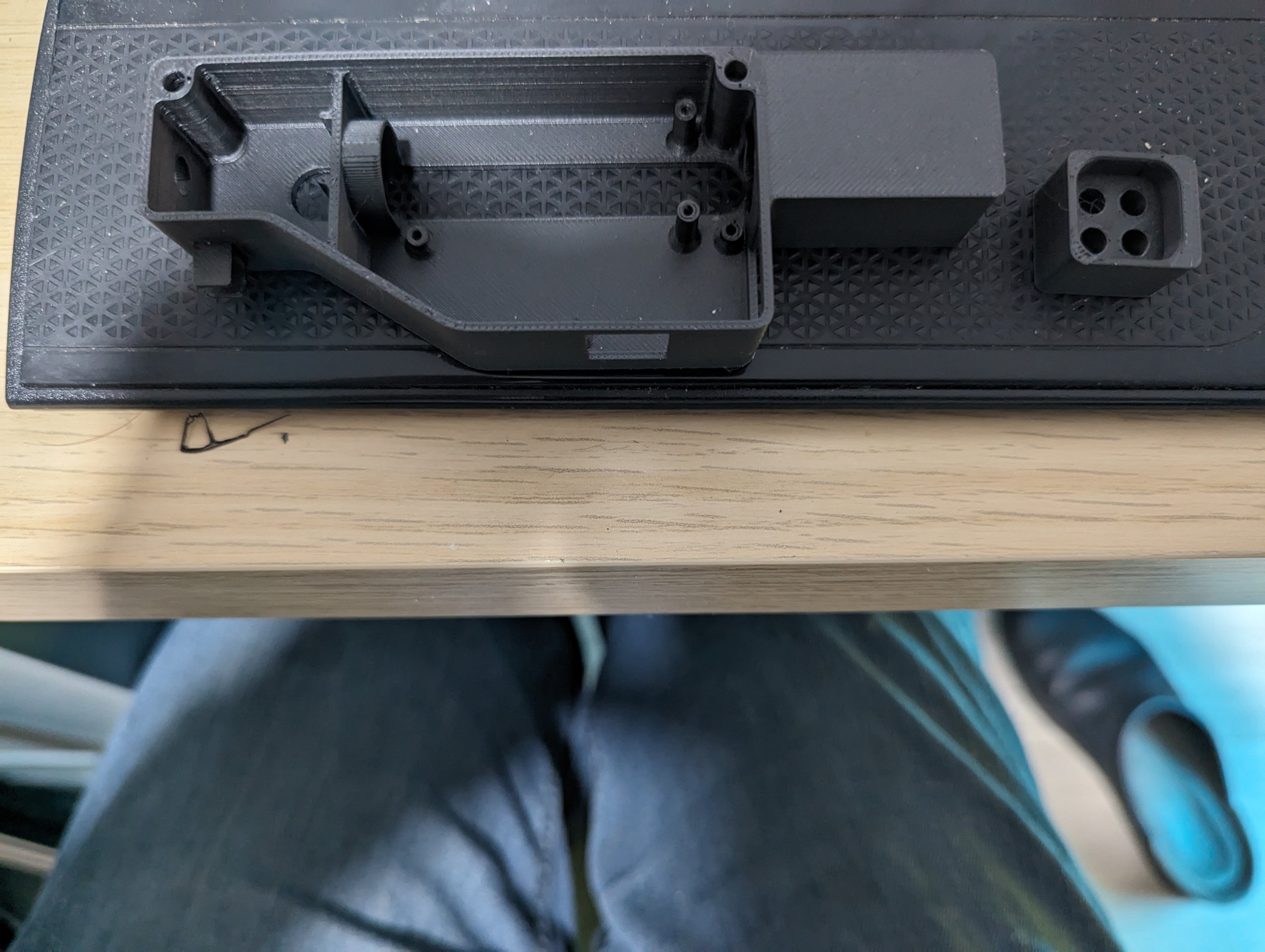 Daarna is inderdaad de snelheid aangepast omdat ik die ludacris (supersnel, 500mm/sec) mode wou testen. Had de temp opgetrokken naar 230 ipv 215 dat het filament nodig heeft, maar was hoogstwaarschijnlijk nog onvoldoende en 240 of 250 had misschien beter geweest. Als je sneller wil printen moet er uiteraard sneller gesmolten worden, en daarvoor moet de temp hoger. Zoals gezegd, is maar opvangbankje en ga het voorlopig laten zoals het is. Misschien later eens herprinten op 250° ofzo