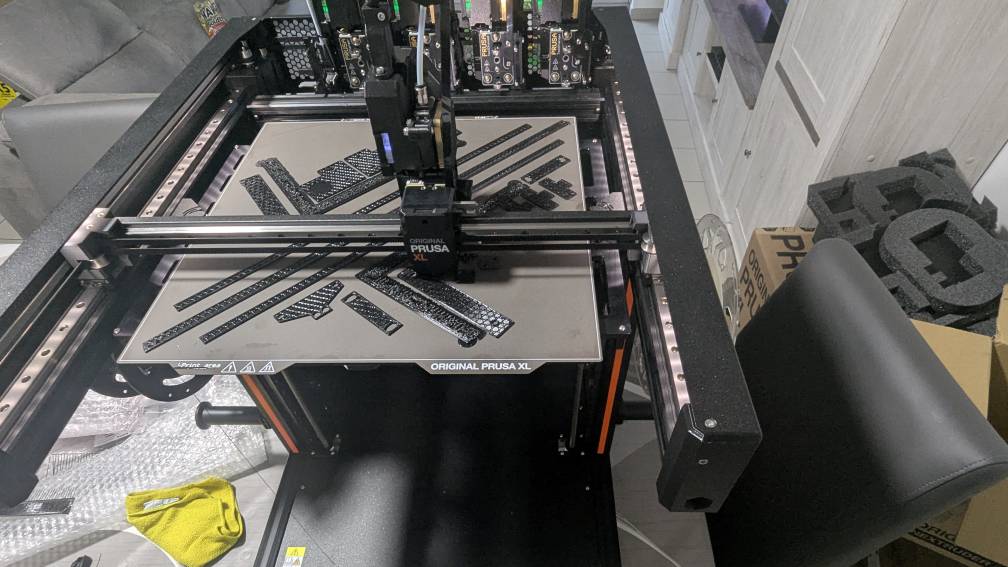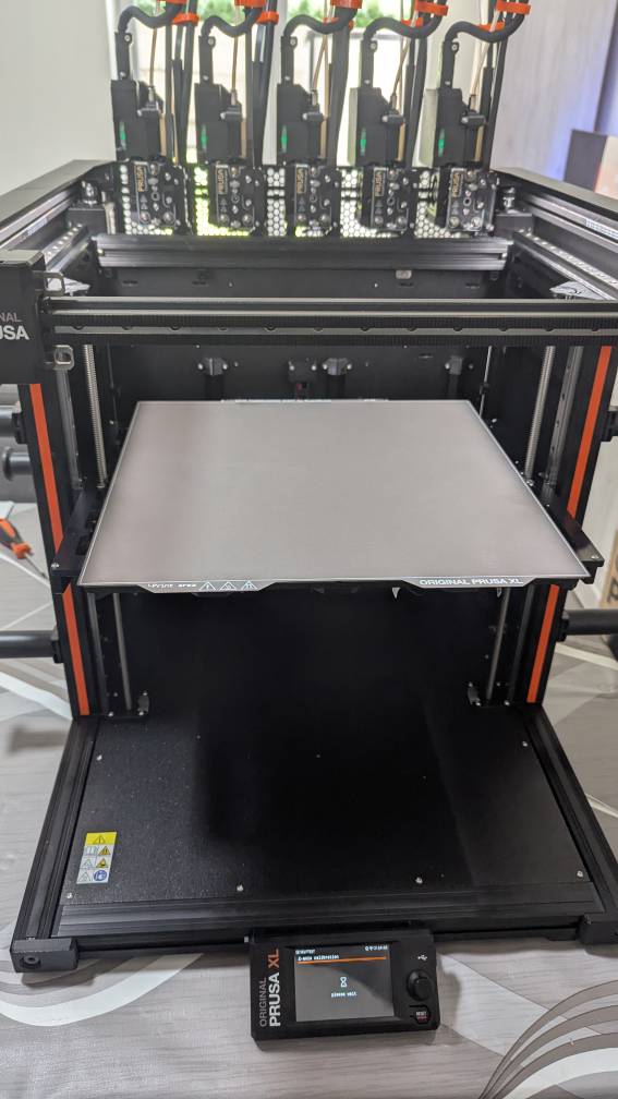 Na een paar kortje printjes, tijd om te testen hoe goed dat satin sheet is met PETG. 12.5h echte print door de Prusa enXLosure
