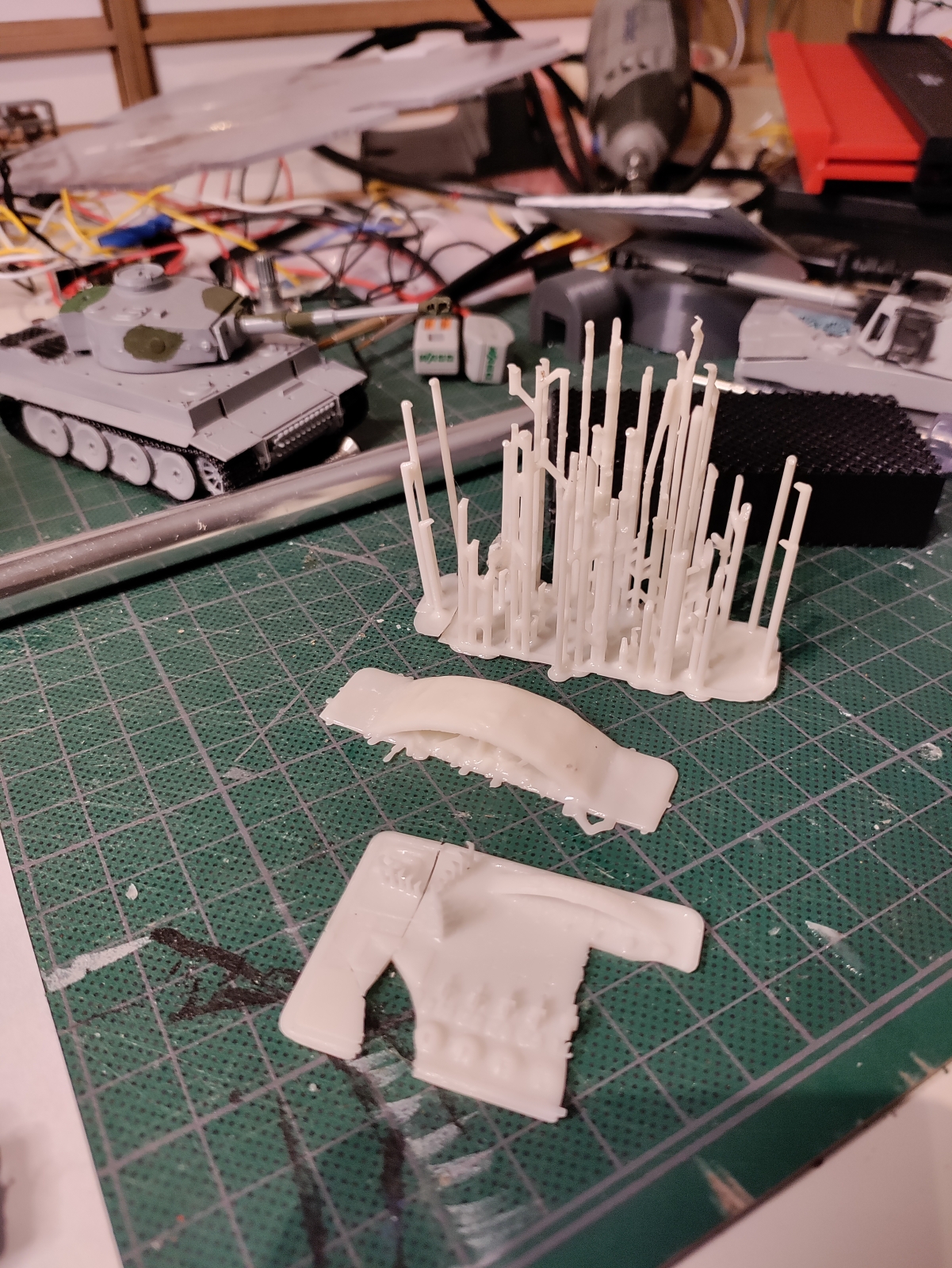 De belichtingstests gaven aan dat 1,6 seconden goed zou zijn, maar dan breken de prints steeds los van de supports.
