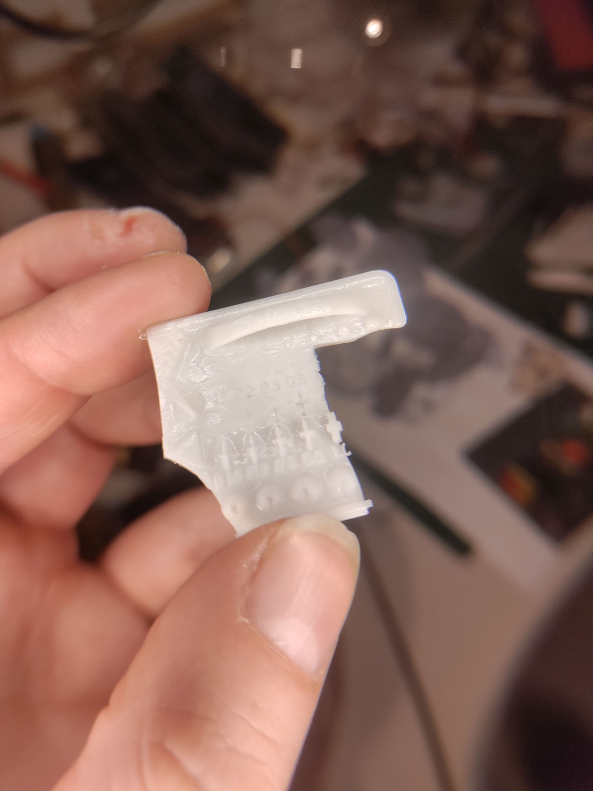 Bedankt voor alle tips. Vandaag de nieuwe FFEP geïnstalleerd en na heel veel schudden de nieuwe witte hars in het vat gegoten. De testprint kwam er prima uit, al brak die tijdens het verwijderen. Kwaliteit is wel wat ik ervan verwacht. Vervolgens eigen print weer geprobeerd maar helaas wederom hetzelfde probleem. Zie bijgevoegde foto's voor het eindresultaat. Overigens is ook de support van mijn eigen print gebroken in een poging deze los te krijgen. Kan ik dan toch beter de eerste belichting op 30 seconden houden?
