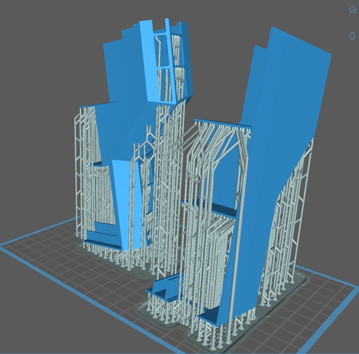 Ik heb inderdaad wel wat schuurwerk aan de zijkant van de opbouw, verder valt het mee. Met de versie die in de foto's te zien is heb ik bewust geen supports op de stijlen gezet en dat gaat prima, maar wellicht dat ik daar in de toekomst nog mee kan stoeien. Overigens is dit een object van 133x78mm, dus best wel fors voor resin prints.