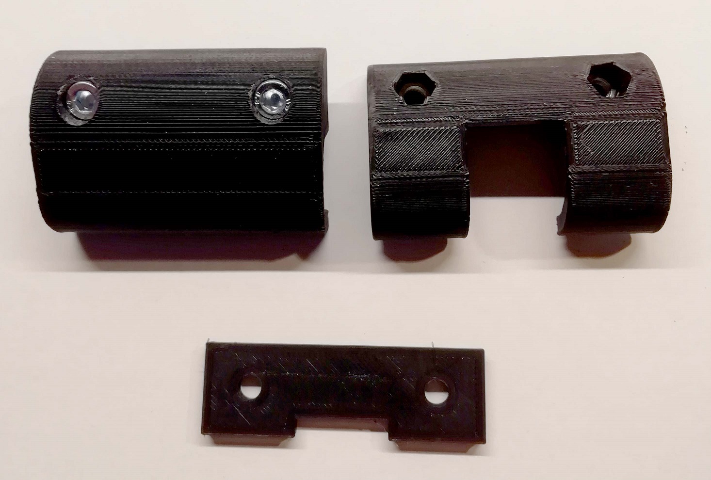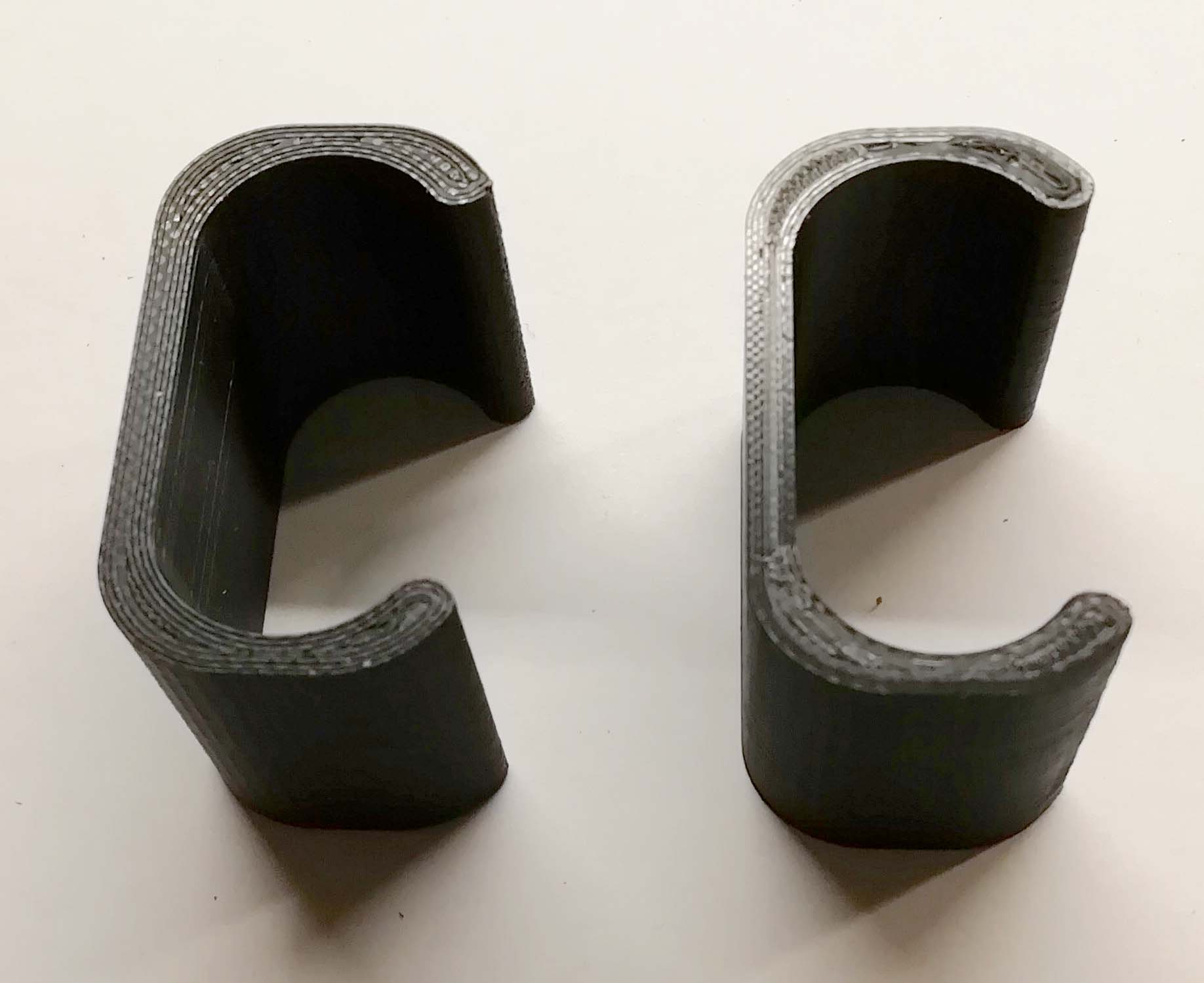 Beide oplossingen zijn ook te koop, maar ik heb ze zelf maar gemaakt op basis van wat ik op foto's kon zien en dat wat ik daadwerkelijk heb kunnen opmeten aan de scooter zelf. Dus onderstaande is het uiteindelijk geworden. De eerste klemmen heb ik niet op Thingiverse staat de tweede wel. Van de eerste staat er wel een vergelijkbare al op TV.