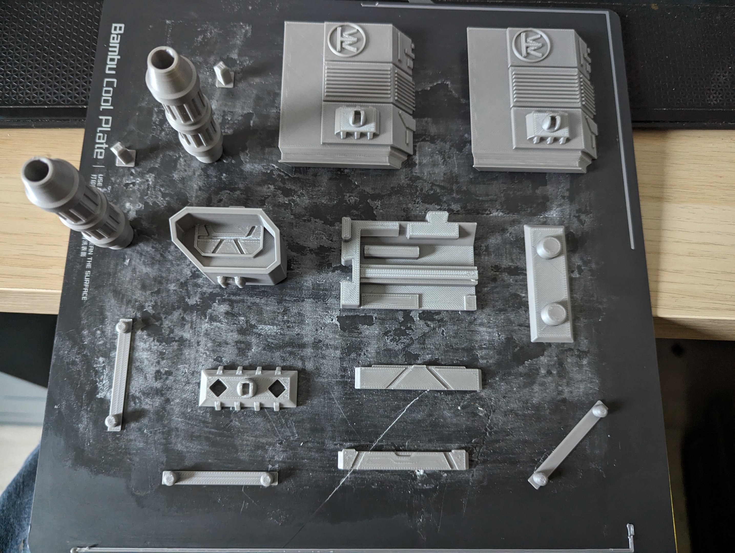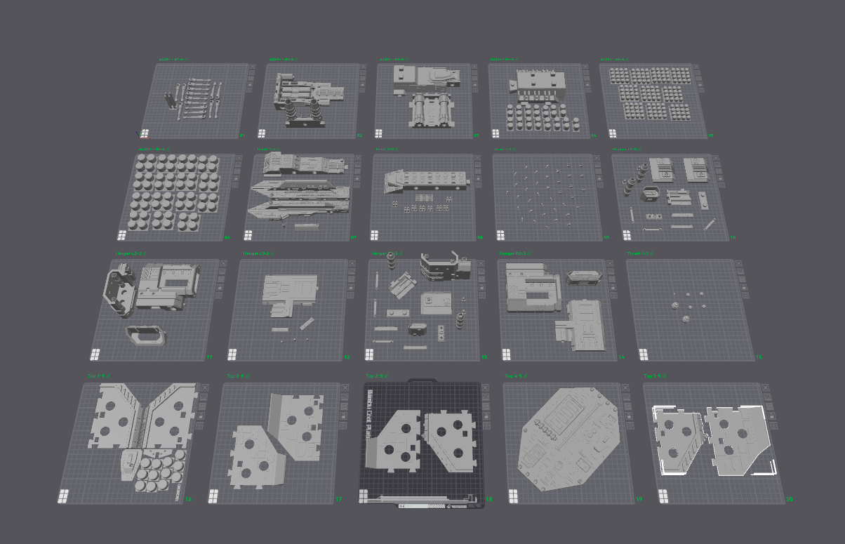 Plate 9 (guns) ga ik mogelijk herprinten in resin ofwel trager. Paar objecten moeten skippen, die guns zijn zo klein lol en m'n aangepaste hotend met vervangbare nozzles gaat hier niet direct zijn. M'n reserve bambu original hotend is ook 0,4.