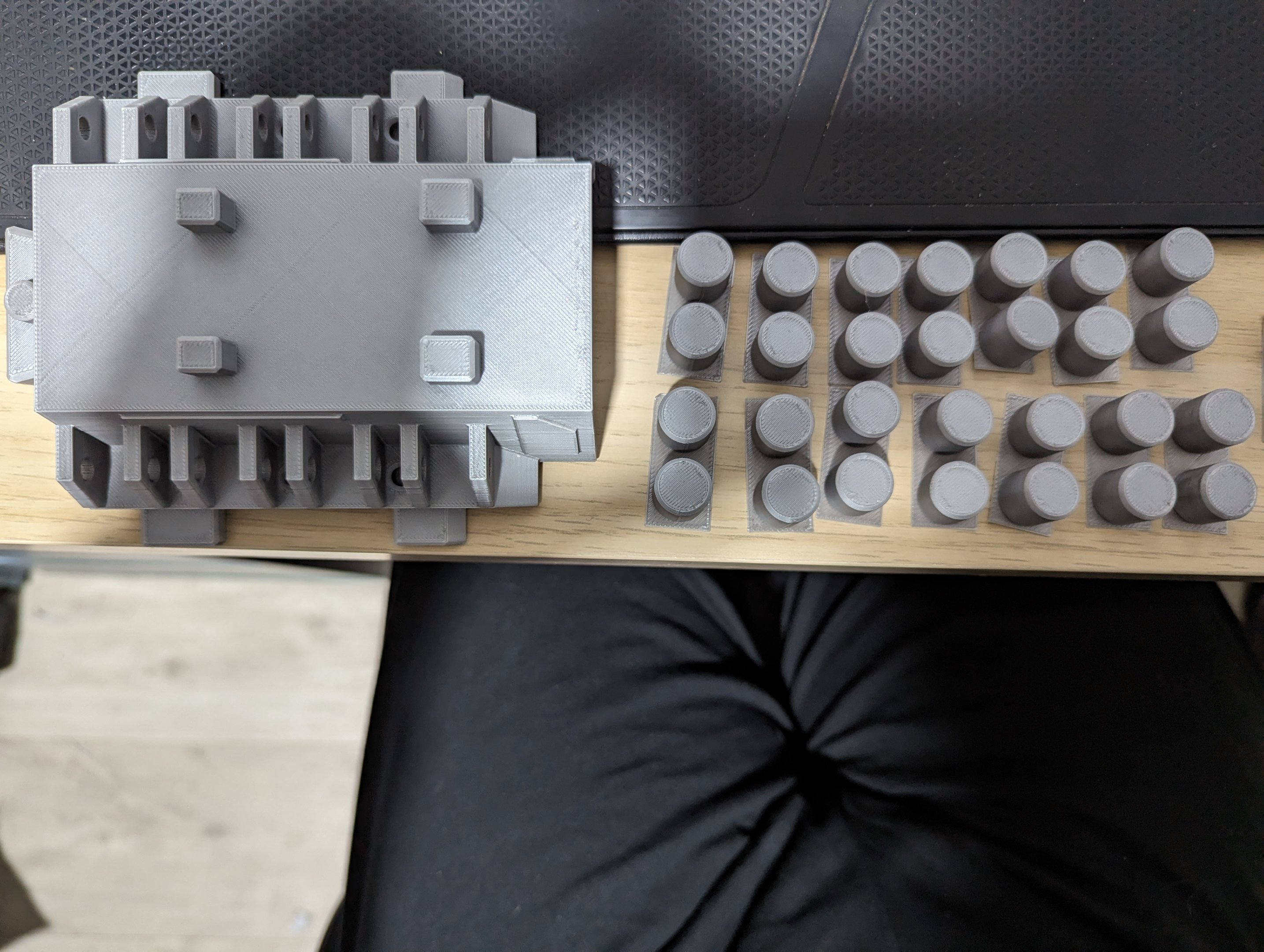 . Nu eerst ff plates 1-3 herprinten. Pas vanaf plate 4 (test fit) gingen de pennen goed in elkaar. Da's omdat ik toen de extrusion multiplier van 1.0 naar 0,98 had gebracht (default slicer waarde). Dus 1e 3 hadden waarschijnlijk last van net een ietsje overextrusie.