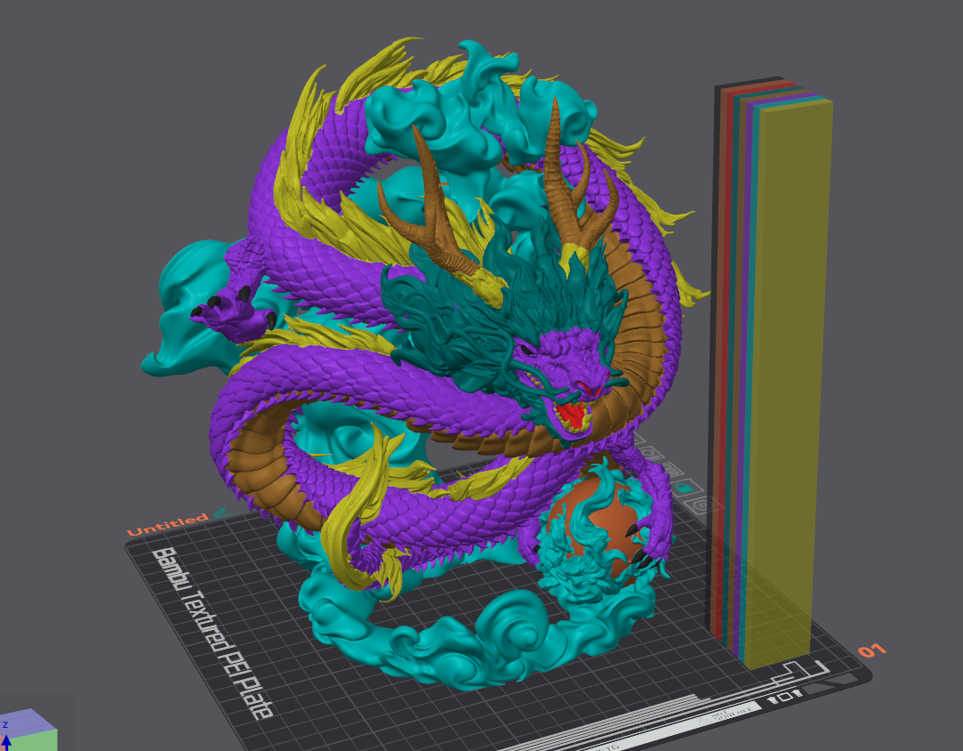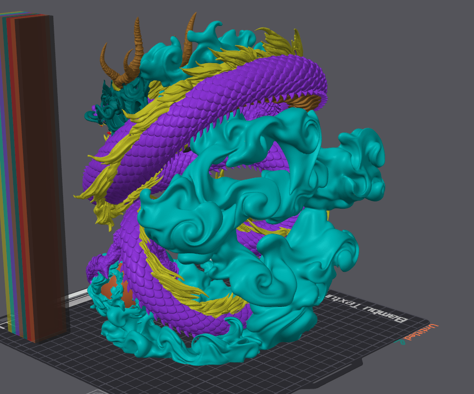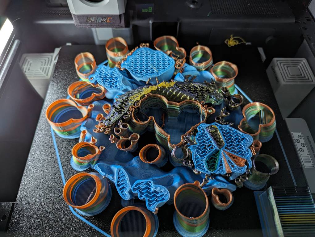 Dit draakje: 4844 wissels met third party v3 hotend (met wisselbare nozzles) om dat ding eens goed te testen. en net geen 8 dagen. M.a.w kleurwissels x2.58, printduur bijna x2