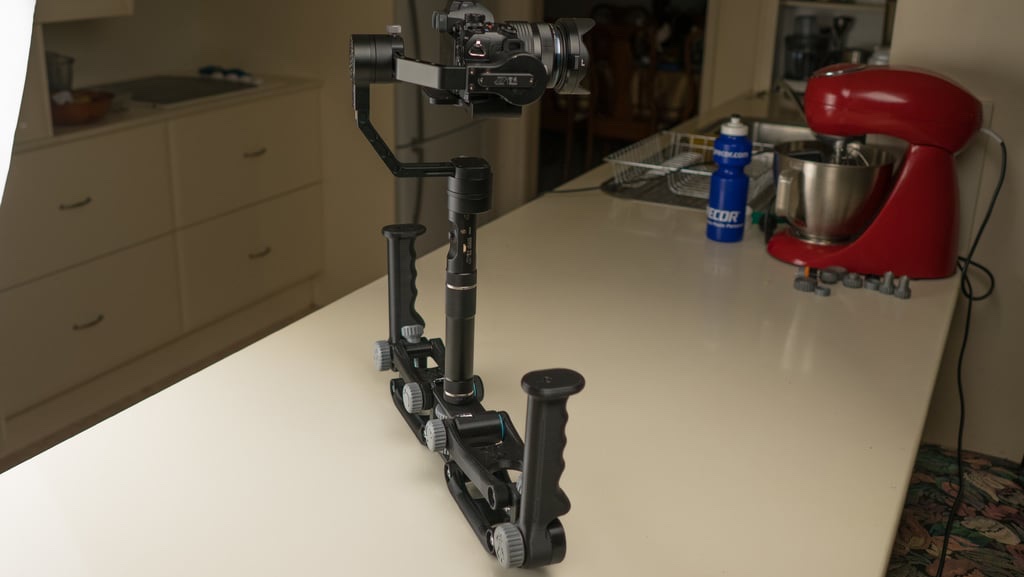 Hier testen twee gasten een gimbal stabilizer. M.i. geeft aluminium veel meer stabiliteit vanwege het hogere eigen gewicht