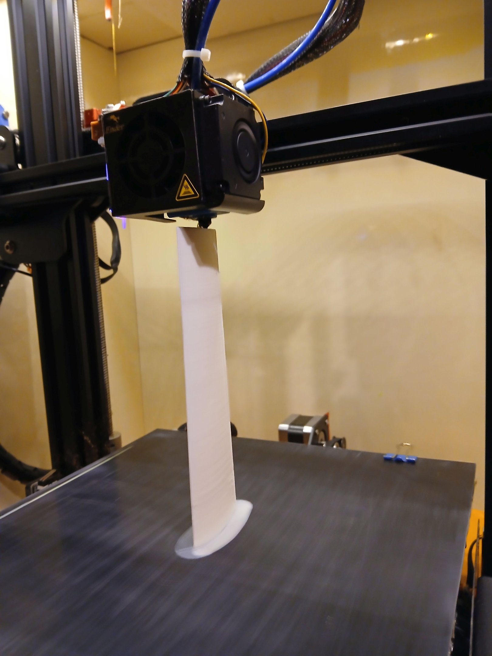 Als eerste heb ik nu een print gestart met 90°C voor de eerste laag en voor de rest 80°C. Zo wil nog een paar temperatuur testjes doen.