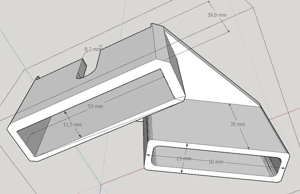 De bovenste rechthoek is precies passend waar origineel de build plate bevestigd zit. De onderste rechthoek is ruimer met wat speling om er gemakkelijker op en af te schuiven.