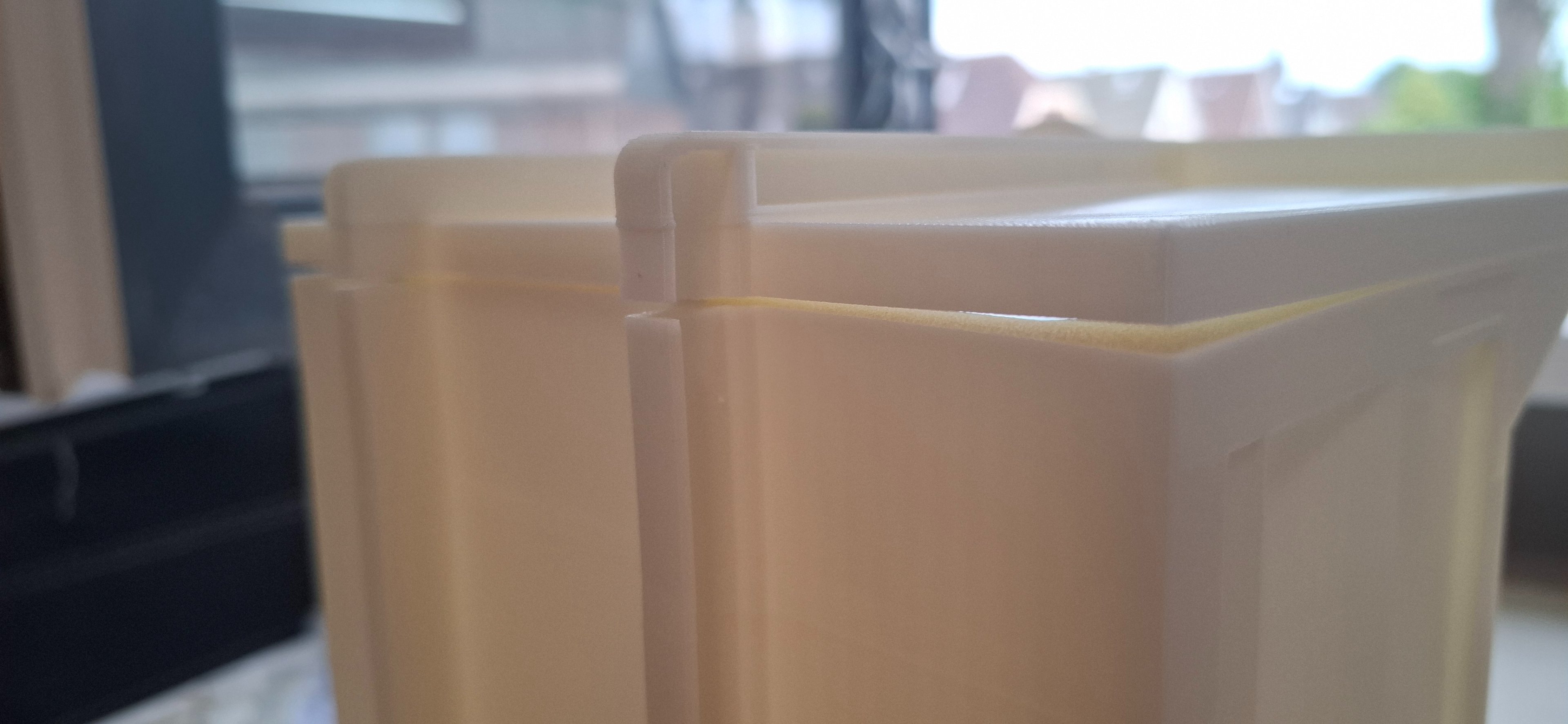 De voorwand en het eerste deel van de bak heb ik geprint. Helaas zijn beiden iets krom getrokken. Natuurlijk allebei en een ander richting waardoor de naad alleen maar groter wordt.